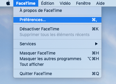 2. Ouvrez le menu « FaceTime » puis cliquez sur « Préférences »