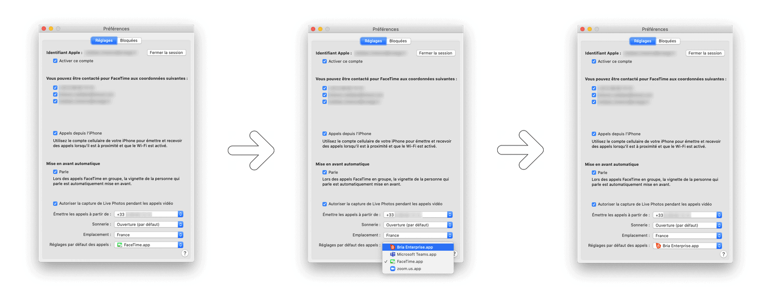 Pour cela, il faut définir Bria Enterprise comme application par défaut pour les appels émis depuis votre Mac.